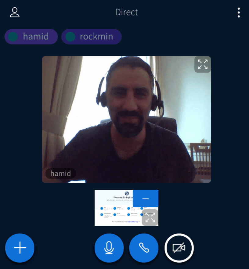 - Integration into Jitsi.meet is our default VC platform. Jitsi meet is an open source video conferencing solution that’s based on Java and it’s super awesome. RC supports integration into BigBlueButton (which is a collaboration and video conferencing platform as well but with whiteboards and a little more features than Jitsi). First one you see here is with jitsi, second one is with BigBlueButton