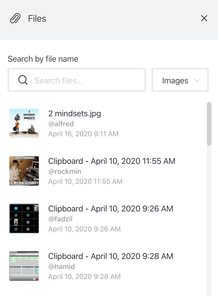 - Another cool component is the ability to narrow down into specific kind of data, like, show me all the images, or all links or snippets. I especially like the mentions (@name), which i think helps you prioritize important messages amongst the weave of messages when you wake up in the morning.